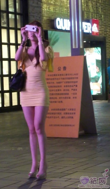 北京夜晚流连街头的高挑美腿美女